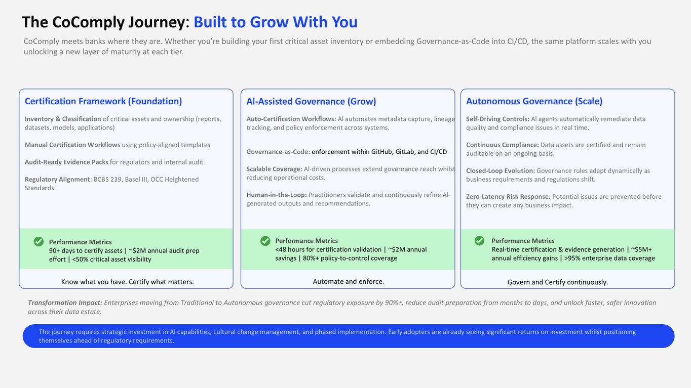 | 60% Faster Certification | Automated lineage and testing with CoComply integration |
