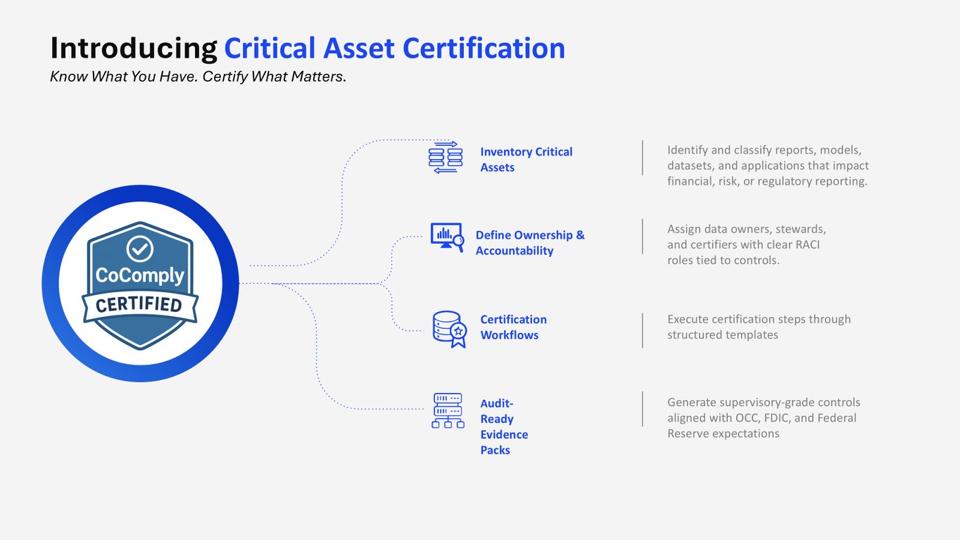 | 90% Data Alignment | Unified certification process across business, risk, and tech |